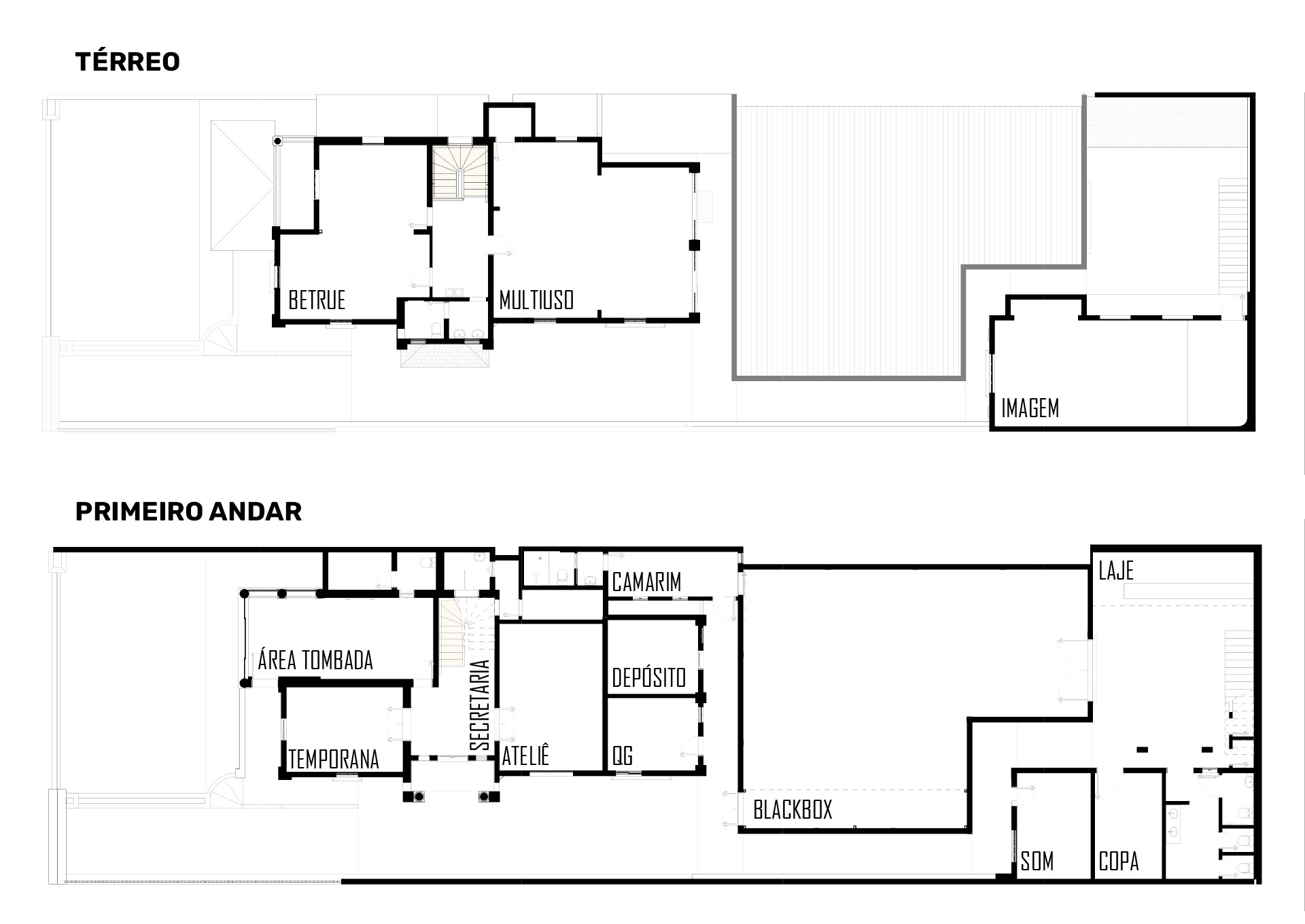 Uma caixa preta, com equipamento de luz e som. Para ensaios de teatro, dança e cinema. Apresentações de teatro, dança e performance. Também pode ser usado para workshops, palestras e aulas. *imagens ilustrativas de projeto